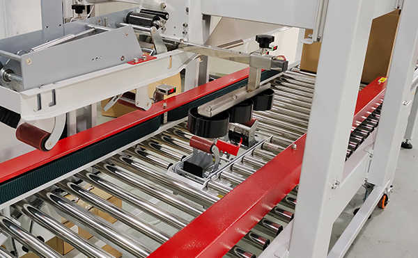 全自動(dòng)封箱機(jī)一般由運(yùn)輸帶機(jī)、上封箱器、下封箱器、側(cè)封箱器、自動(dòng)封箱器、涂膠裝置、跟蹤檢測(cè)裝置、控制部件等部分構(gòu)成。該設(shè)備操作簡(jiǎn)單,節(jié)省人力,只需將物品放在運(yùn)輸帶機(jī)上,設(shè)備自動(dòng)完成封箱過(guò)程。但是,由于該機(jī)器價(jià)格較高,所以很多企業(yè)會(huì)選擇購(gòu)買半自動(dòng)或手動(dòng)封箱設(shè)備。